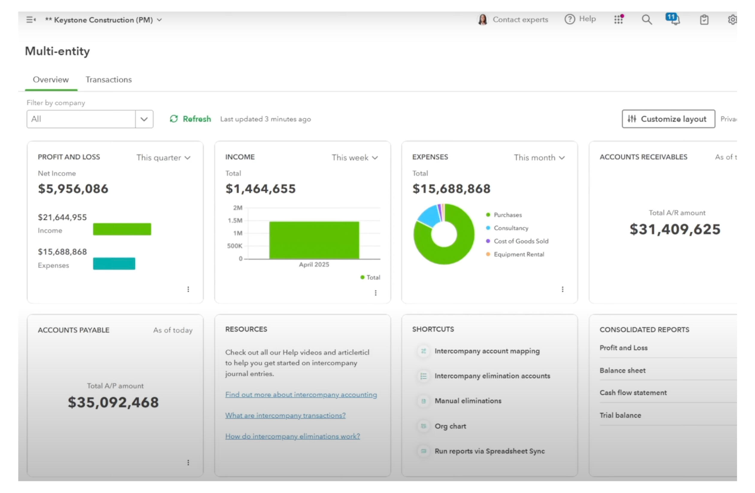 Multi-entity accounting dashboard