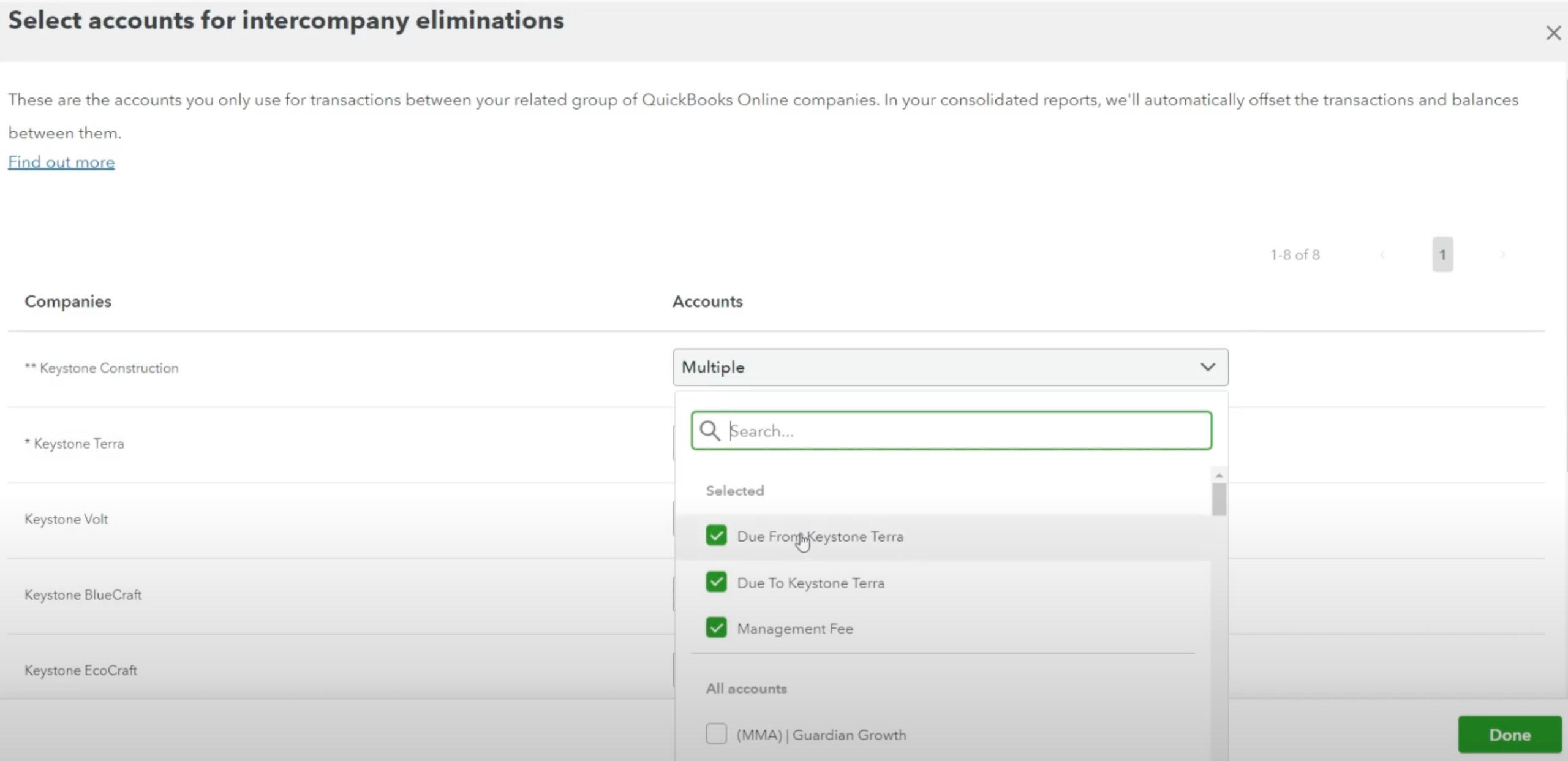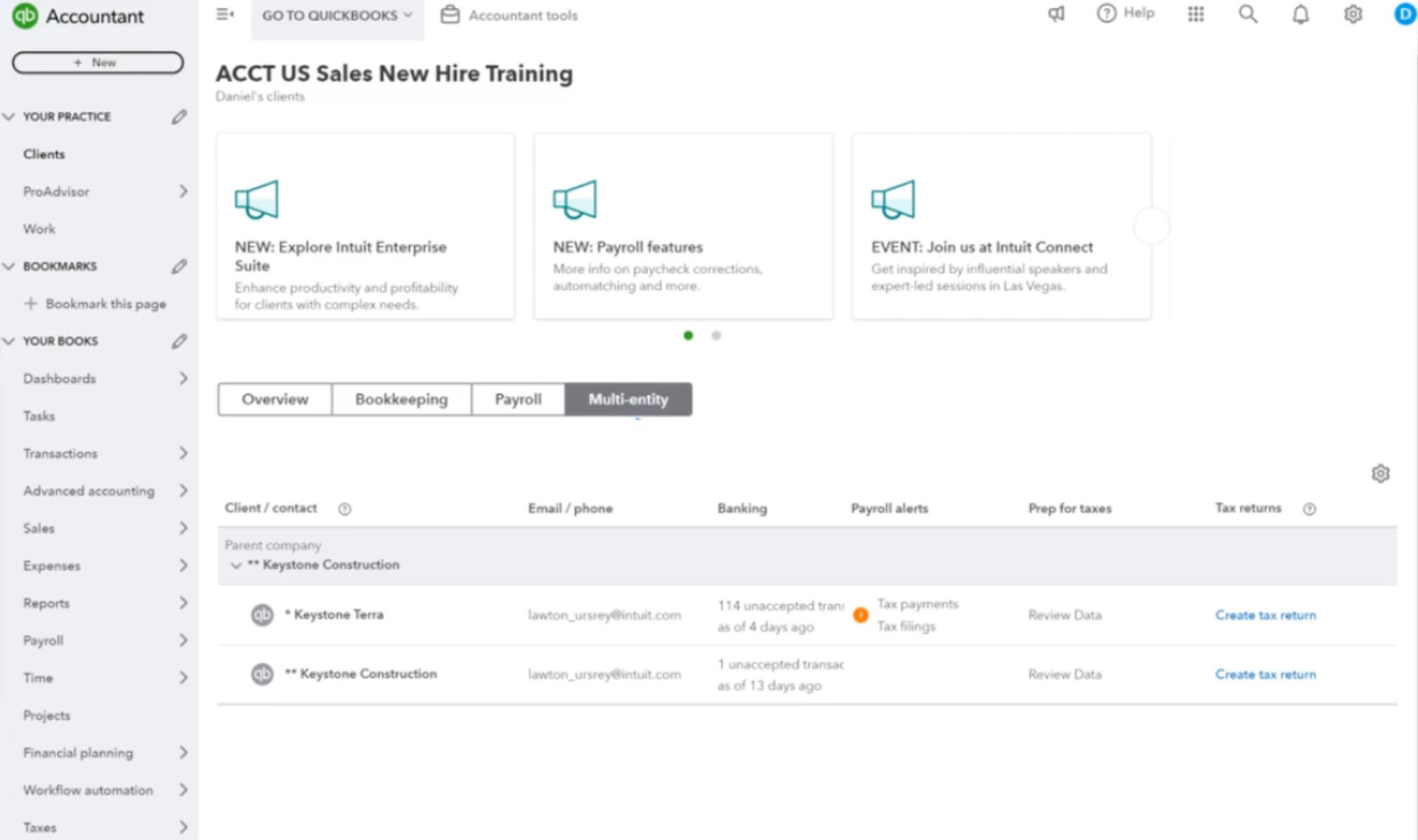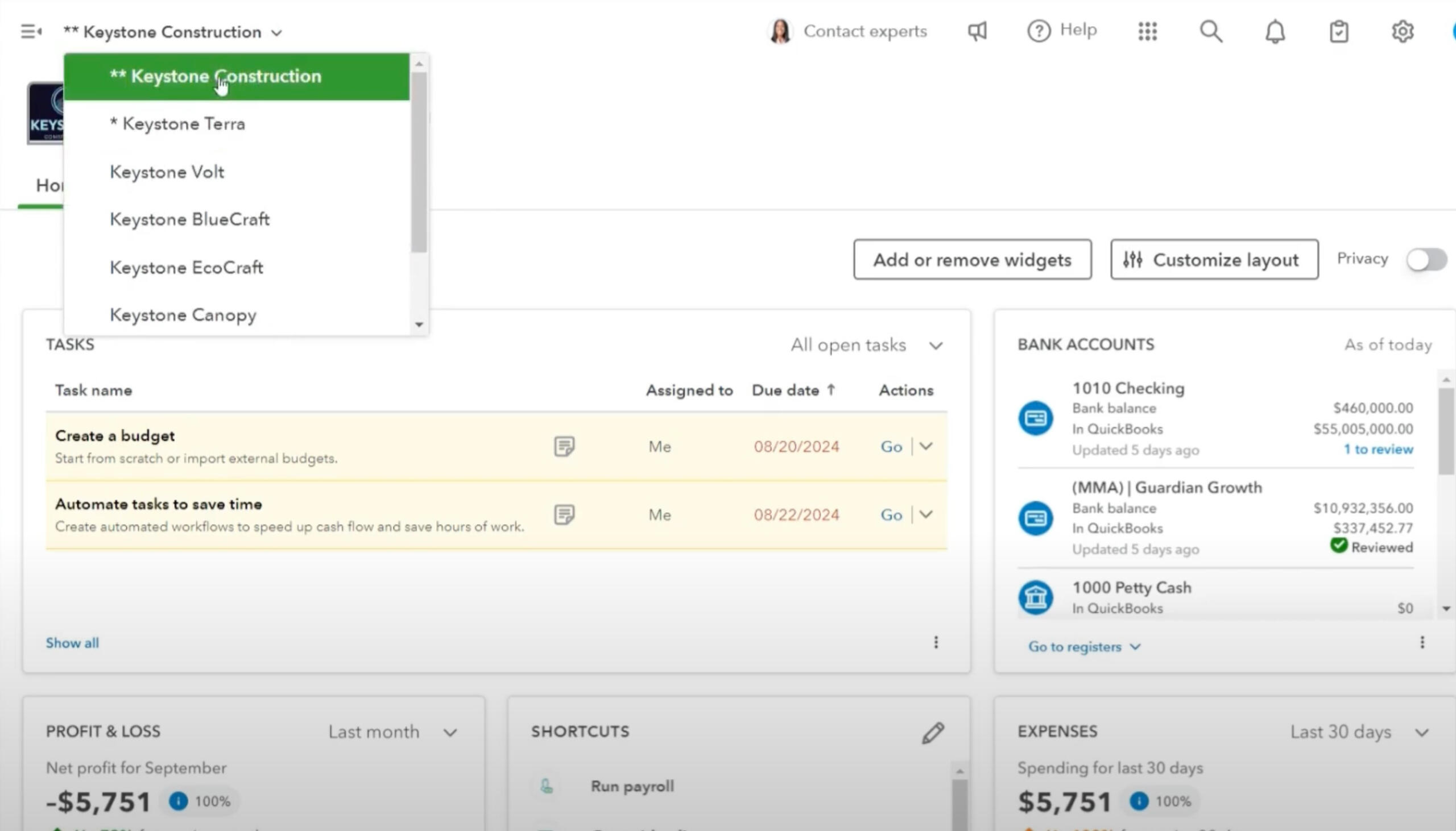 Multi-entity accounting dashboard