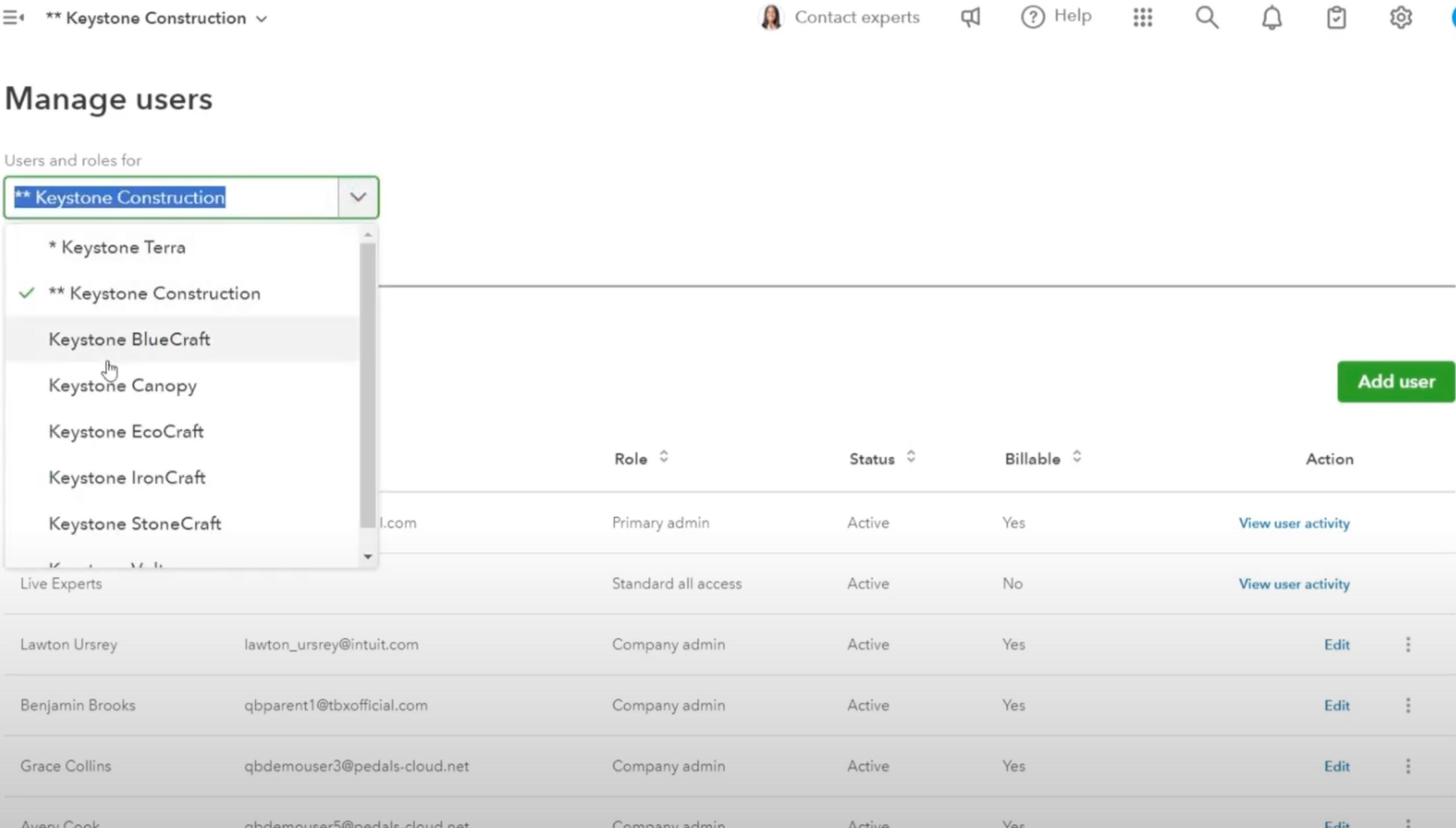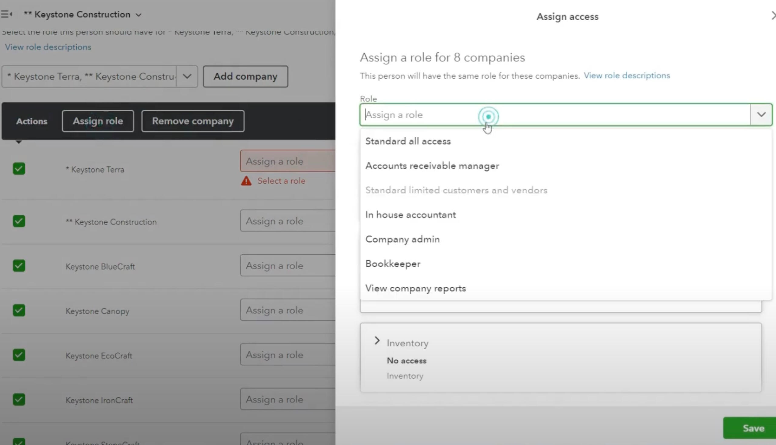 companies (subsidiaries), financials, users, roles, tasks