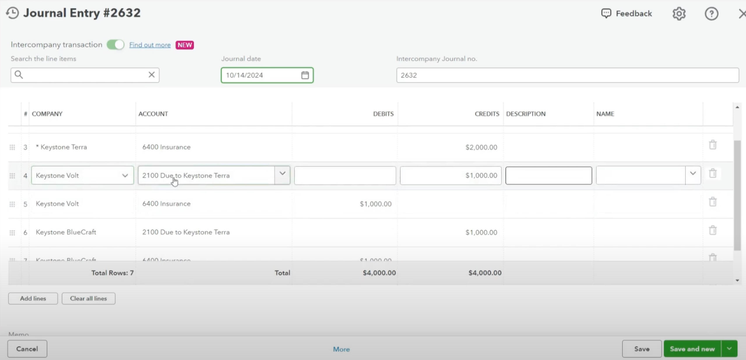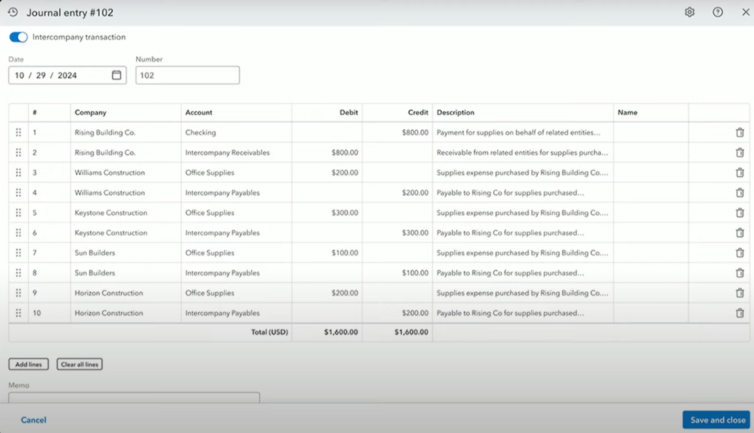 Intercompany activities: transactions, accounts